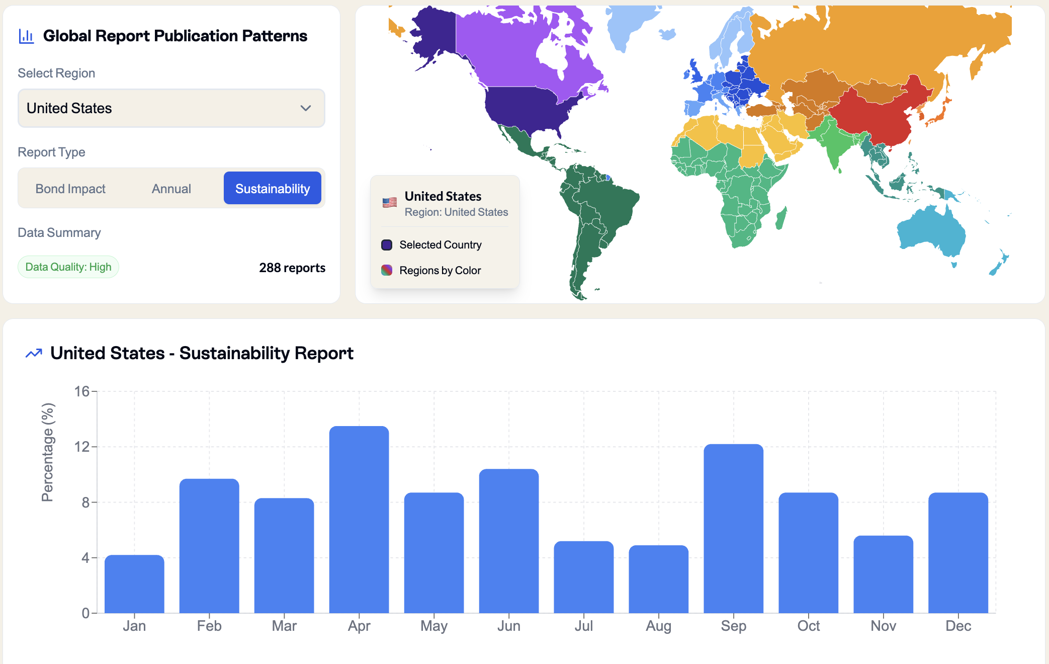 - Identify peak months: Spot when most reports are released to plan your analysis or outreach.